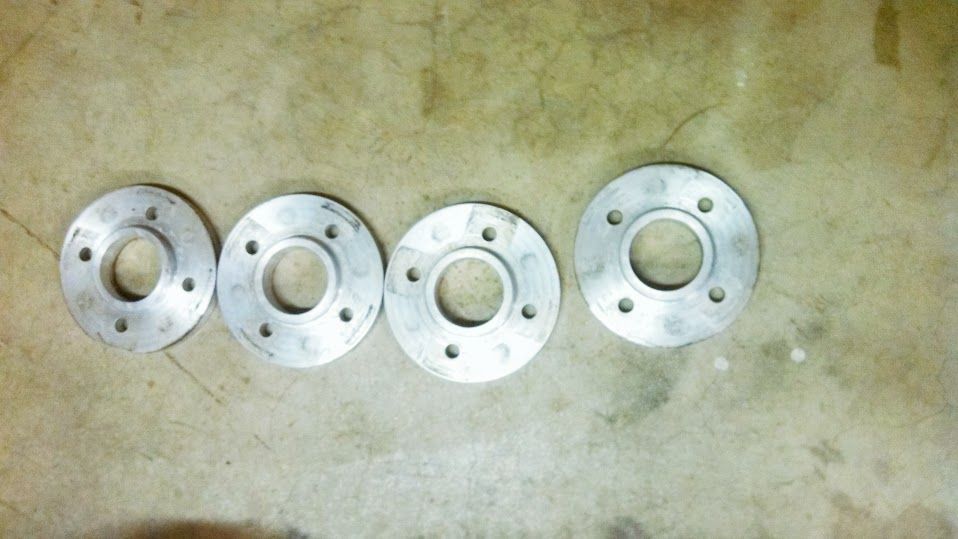 I have 4 custom aluminum hub adapters/spacers. **THESE ARE NOT YOUR TYPICAL SPACERS/ADAPTERS!** These are made to put lug-centric Japanese hub size wheels on E30 hub centric hubs. Most people think these are just "spacers" - no, they are exactly what you need if you have Japanese wheels with bigger hub sizes (72mm) and larger offsets to fit the E30 perfectly (E30 hub size is 57mm). Without these, you will have massive vibrations and incorrect wheel spacing. 2 years ago I did a lot of searching around and could not find anyone who made these. I couldn't even find hub rings that would fit snugly either. These are a MUST HAVE to make almost any Japanese wheel fit an E30. Also, these act as 15mm spacers.