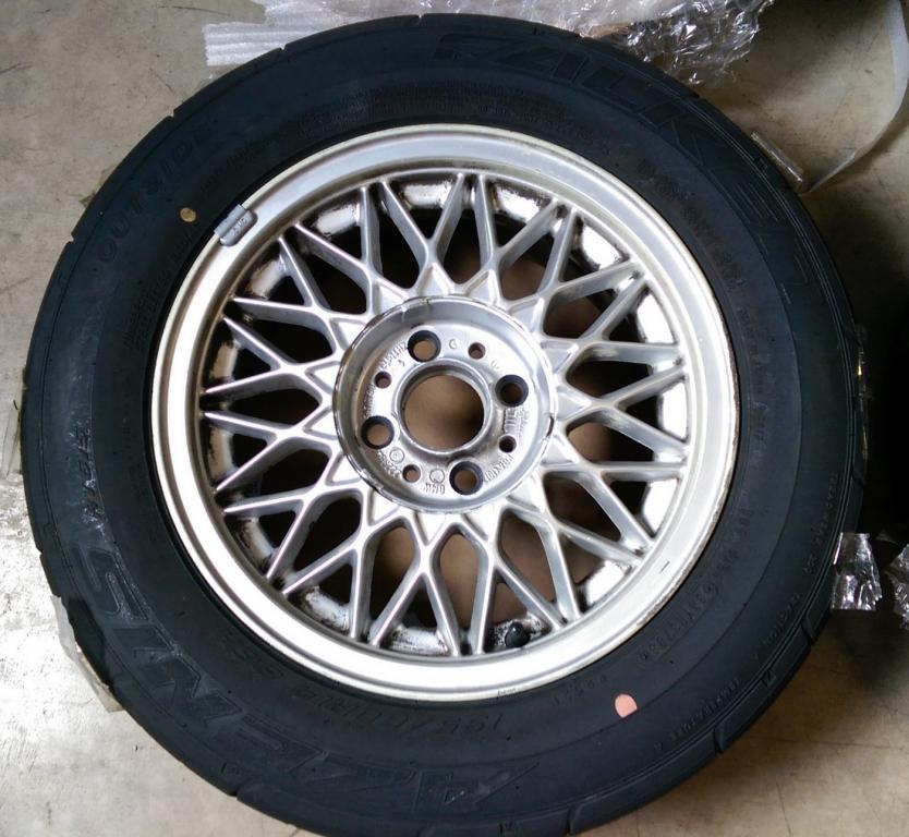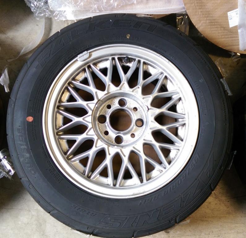 Selling a set of new Falken Azenis 195/60-14 mounted/balanced on OE 14" basketweaves. The wheels are mechanically excellent -- no bends, straight and true, just some minor curbrash.