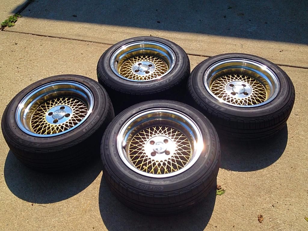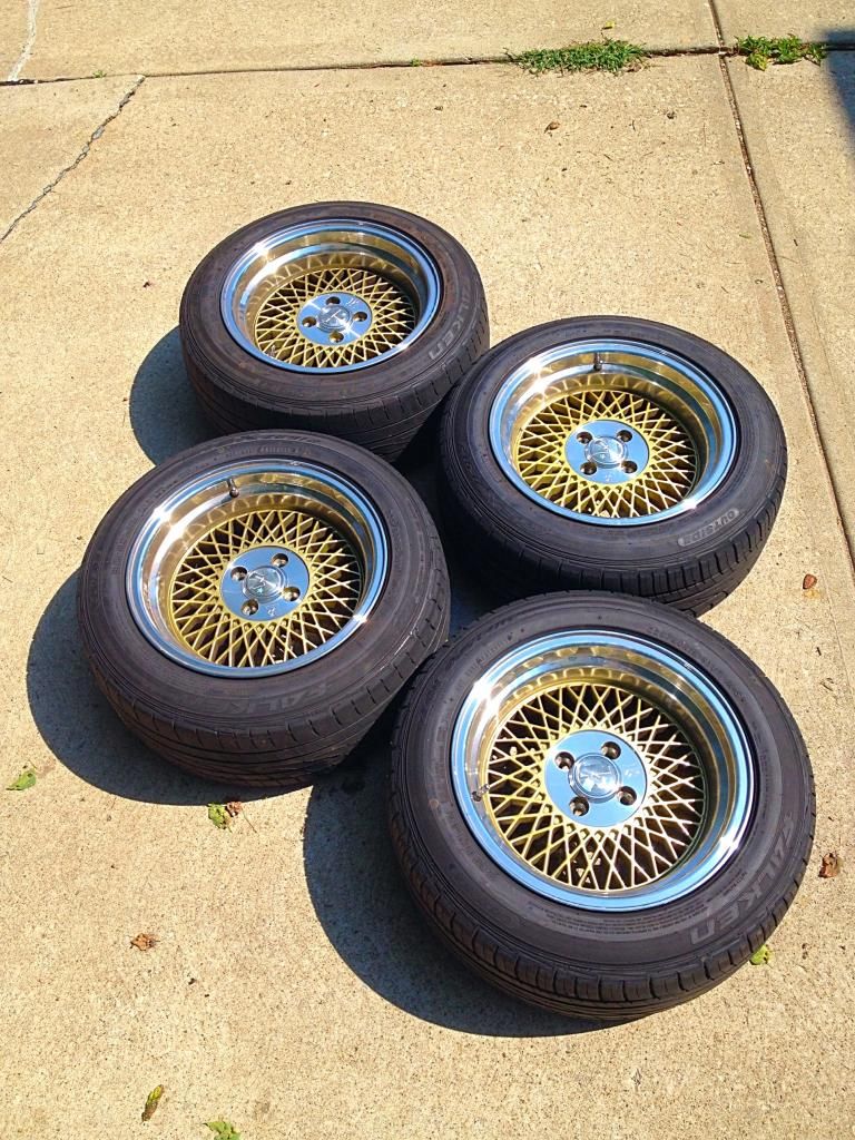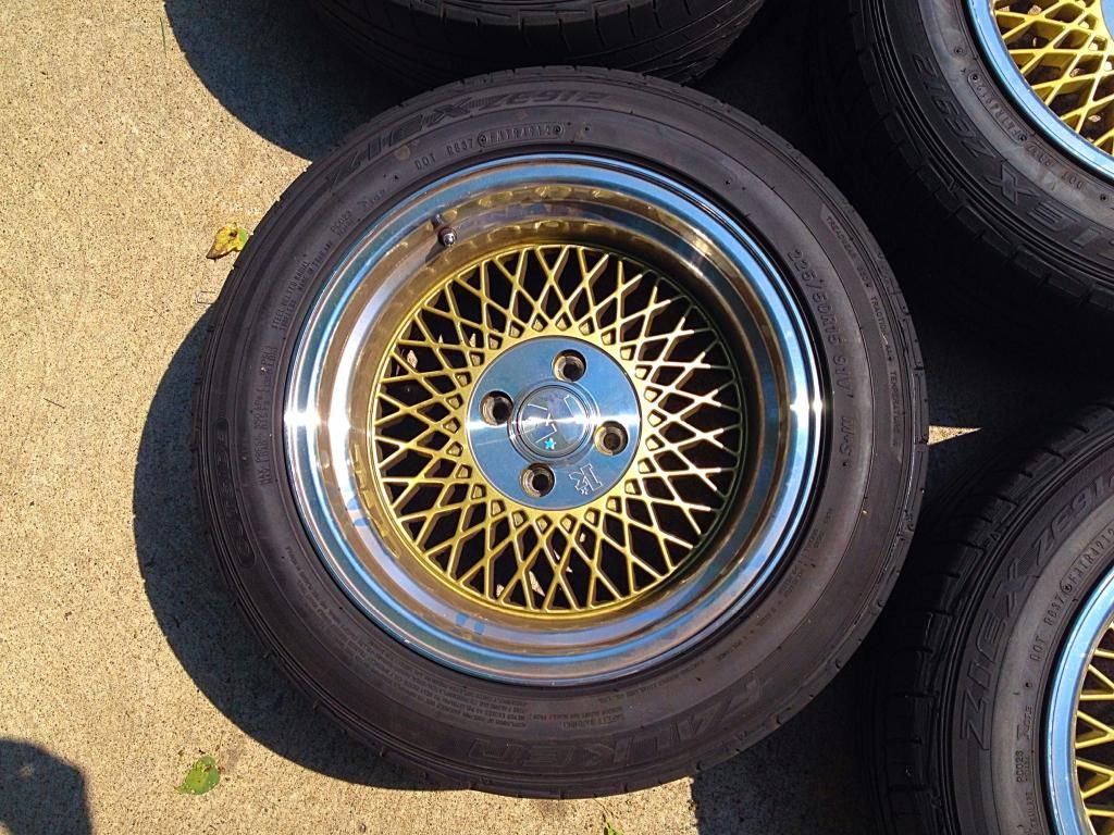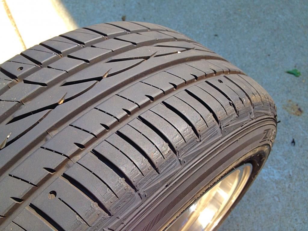 They also come with a decent set of 225/50 Falken Ziex tires. The reason i say decent is because two of the wheels are in great/close to new condition. One of the tires is pretty close to bald but the last is in between (not too beat up but not new) I don't have my fenders rolled and with the aggressive size of the tires; it would rub anytime i was on uneven surfaces.