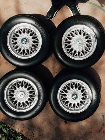 No curb rash. No bends. There are some small nicks here and there from typical use, but they are clean and look great overall. They include all four center caps (they don't completely match - see pics). They came with my 91 318is when I bought it a decade ago. I used them for one winter in 07, they have been in storage since then.