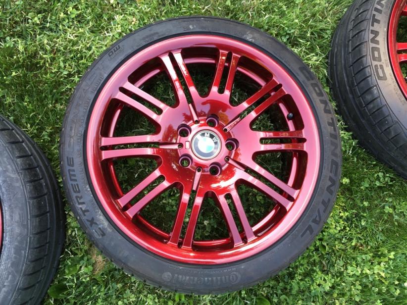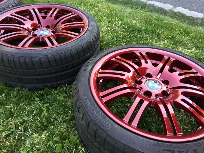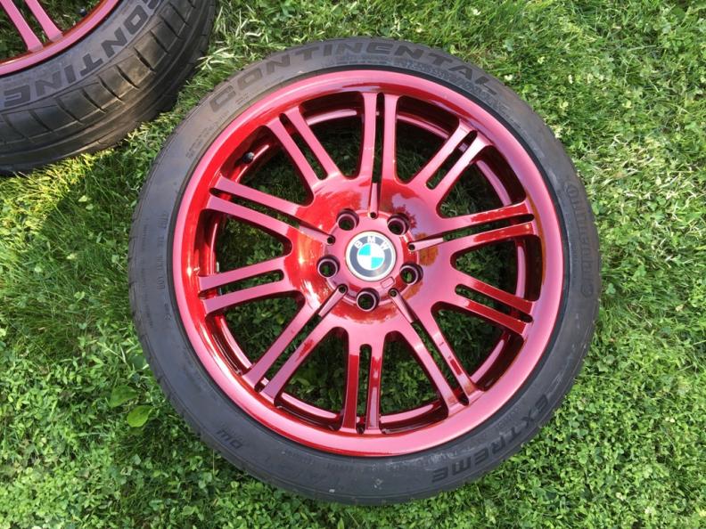 I have a set of OEM BMW Factory 19" staggered wheels that have been professionally refinished by Espo's powder-coating. The wheels were straight, true, had no cracks or damage prior to the refinishing. The color is absolutely gorgeous in person, pictures do them no justice. Truly a must see in person to appreciate. Center caps are included. TPMS Sensors are included as well.