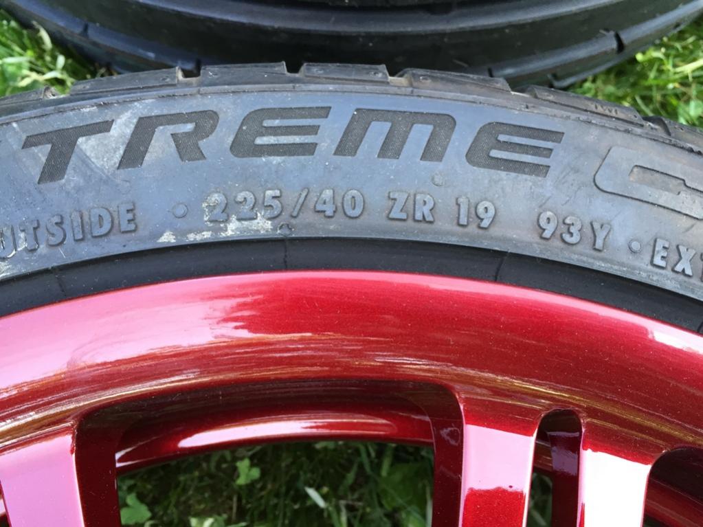 Tires are included. The fronts are recent with minimal wear, and the rears are literally brand new and never used (see pictures for reference) All are matching Continental Extreme Contact DW. 225/40/19 Fronts, 255/35/19 Rears.