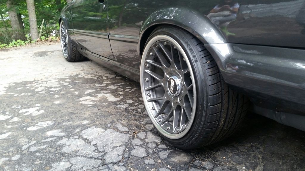 wheels fit even on the slammed e30 with coilovers, fenders not rolled