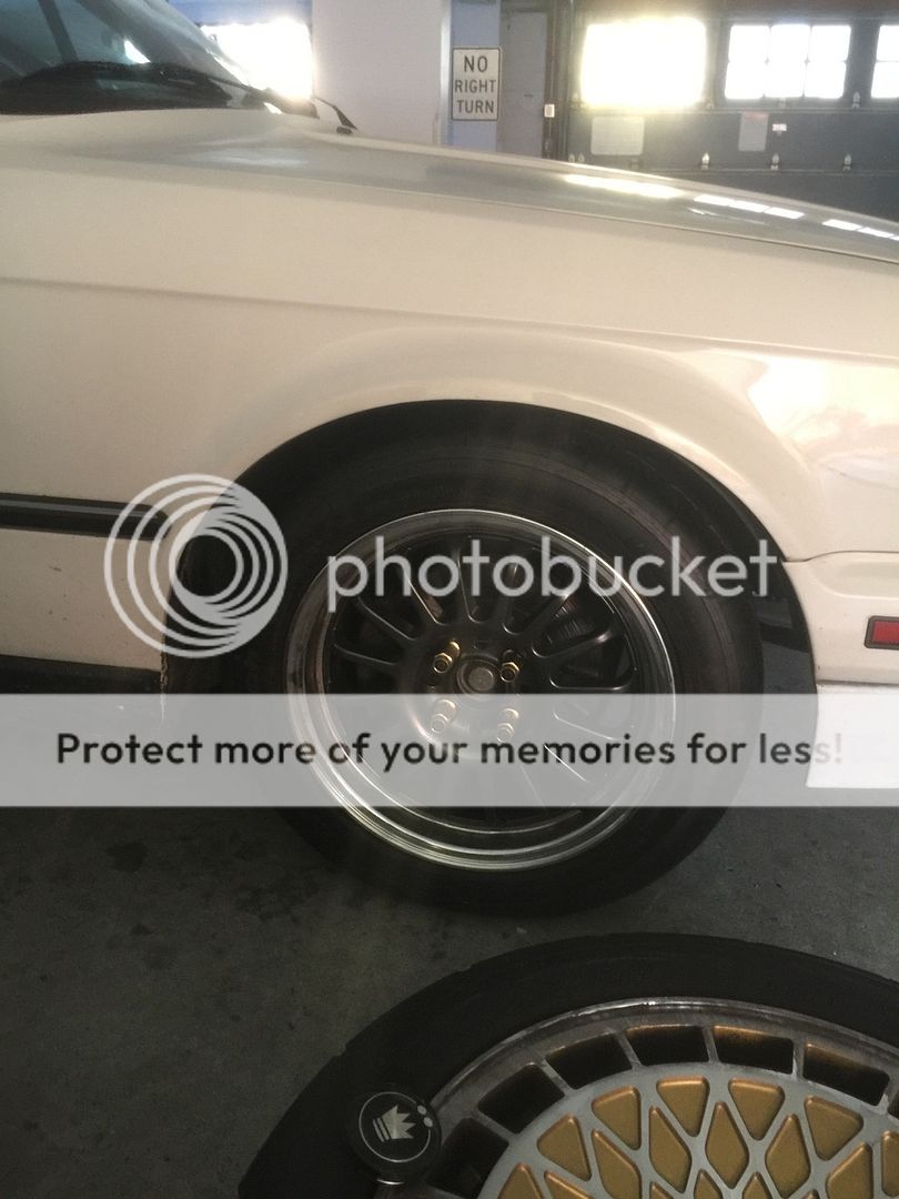 Up for sale I have four basically brand new wheels and tires for sale. Wheels are Konig Retrack's with a gunmetal metallic face and a polished and cleared lip. Tires are BFGoodrich G-Force Super Sport all seasons. They also come with brand new 949 racing stems. These would make a great wheel tire combo for a daily or for winter wheels or for anything really, the wheels are light and the tires are performance oriented. They look pretty good on an e30 IMO too.
