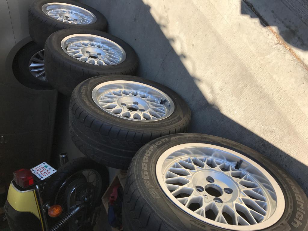 Hi guys, selling my Ronal ls wheels. wheels are in great shape with no rash, bends or nicks. Priced is $900.00 with or without rubber. Willing to ship on buyers expense. Sad to have to sell them but no car no use.. cheers! Sorry for the wacky pics. Soon as I get some help how to edit I will do asap. Thanks !!!