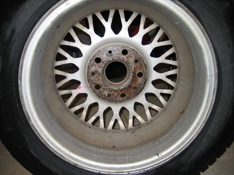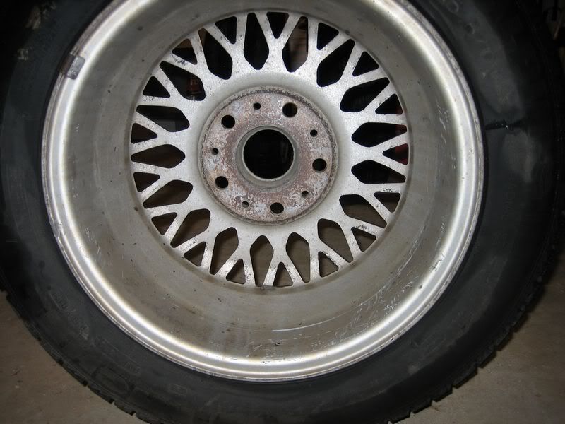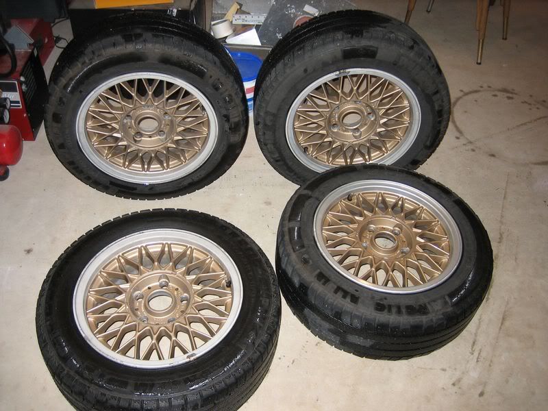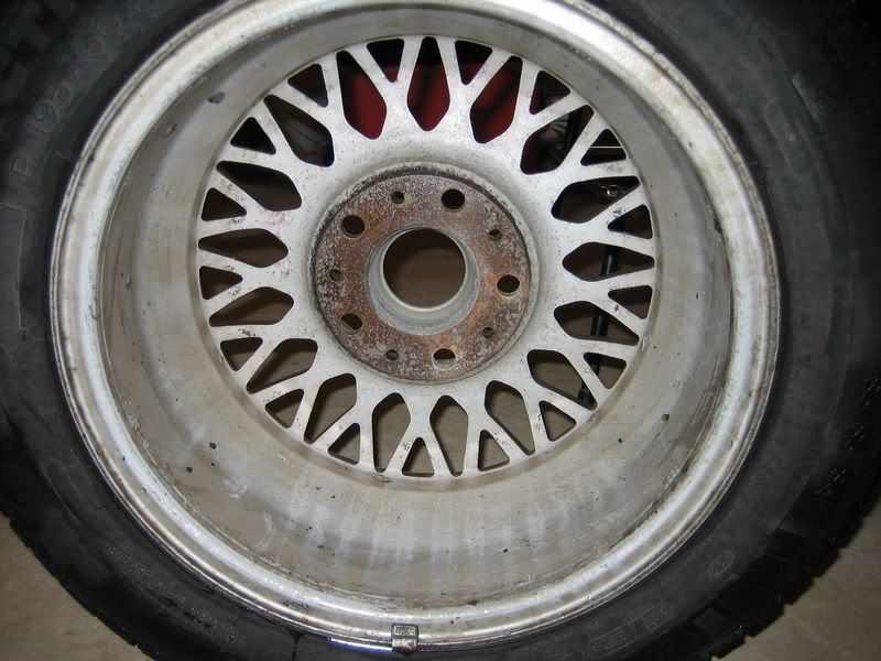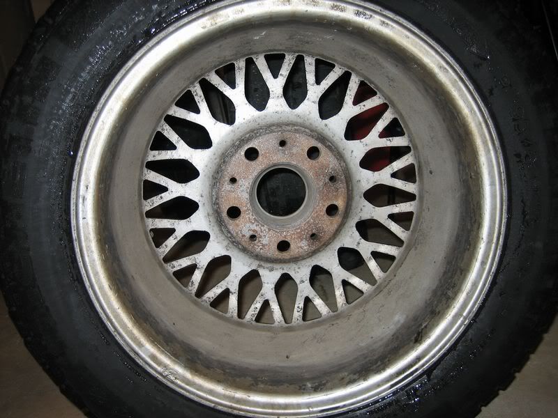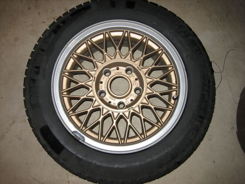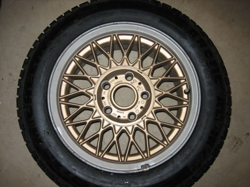 The tires are Michelin alpine winter tires (195/60/15) the previous owner put on. He said they were only used in 2 winters otherwise the car and wheels have not seen snow. I ended up running these for about a week in summer because I was swapping the old rims that were on the car, at that time I ran over a nail, so one of the tires has been patched.
