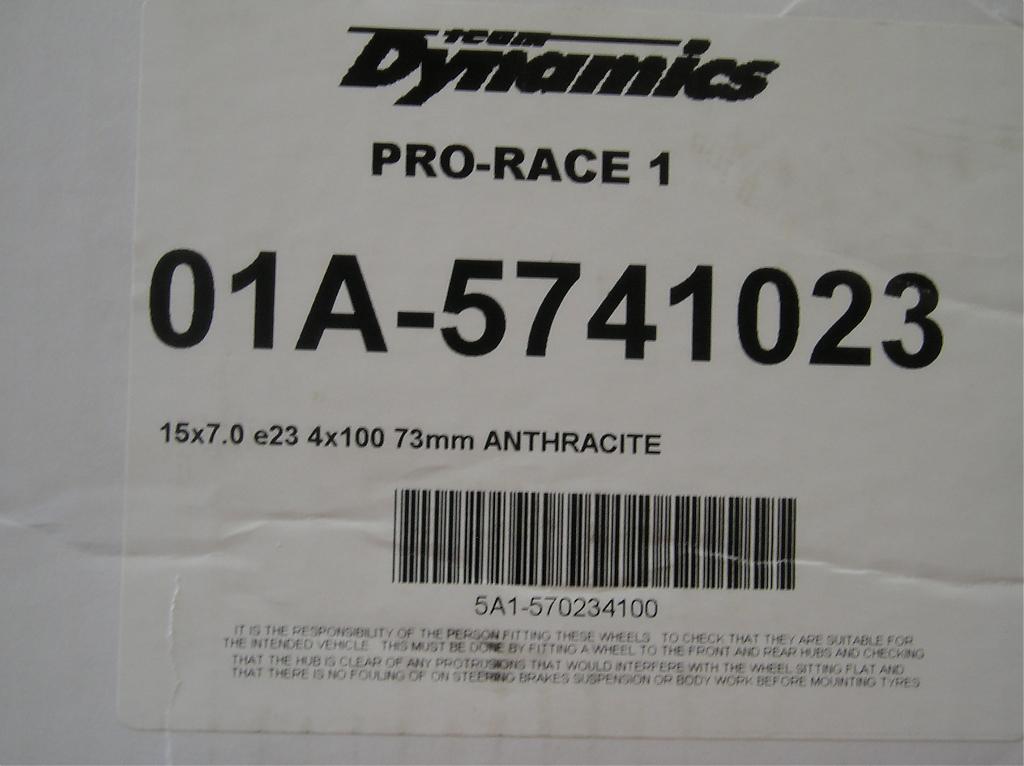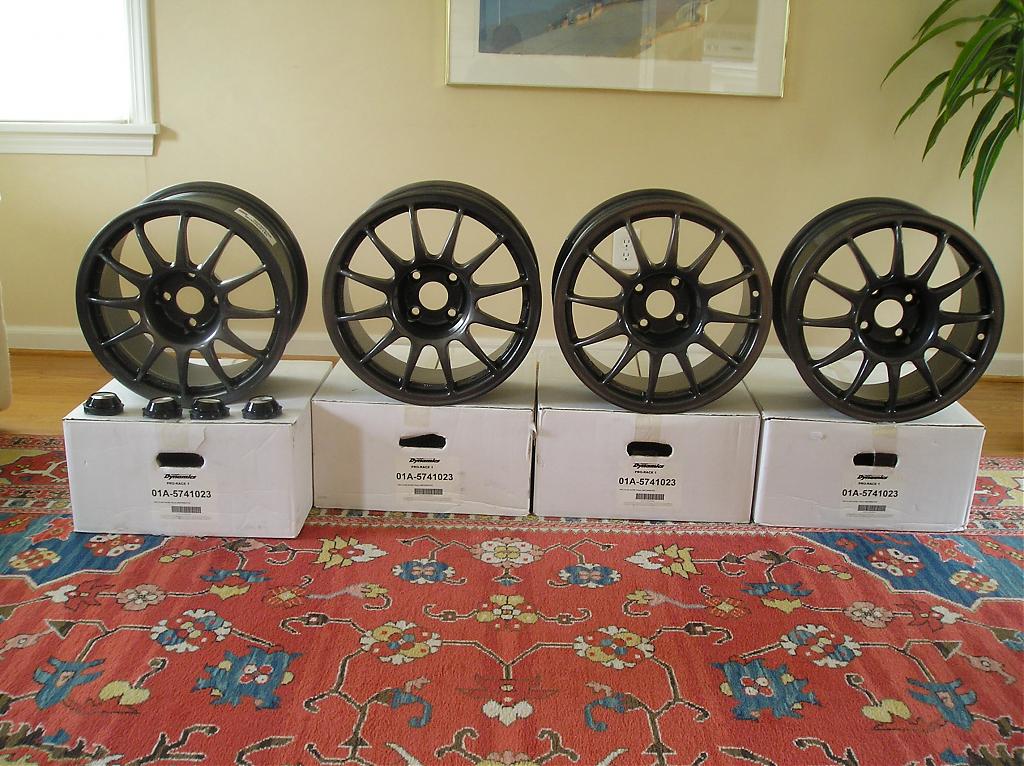 These are NEW 15X7 4X100 with a 23 offset. Color is Anthrasite. Model is Pro Race 1 and they weigh only 13+ lbs. Caps and hub rings included.