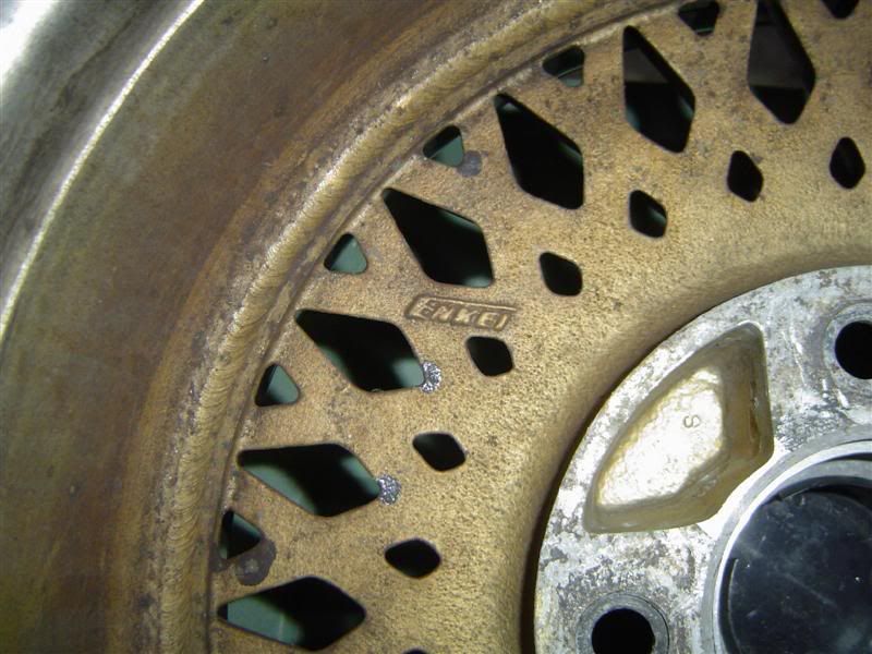 They're in great condition - the lips are perfect... no curbing or rashing... they had some balloon-like truck tires on them when I got them, so the lips were safely protected from curbs and other nasties. The centers are in decent shape with no obvious nicks etc; the silver paint on the centers is crackling a bit with age, but nothing I would hesitate to put on my car right now (if only they'd fit). If it really bugged you, a quick scuff 'n' spray on the centers would make them look perfect.