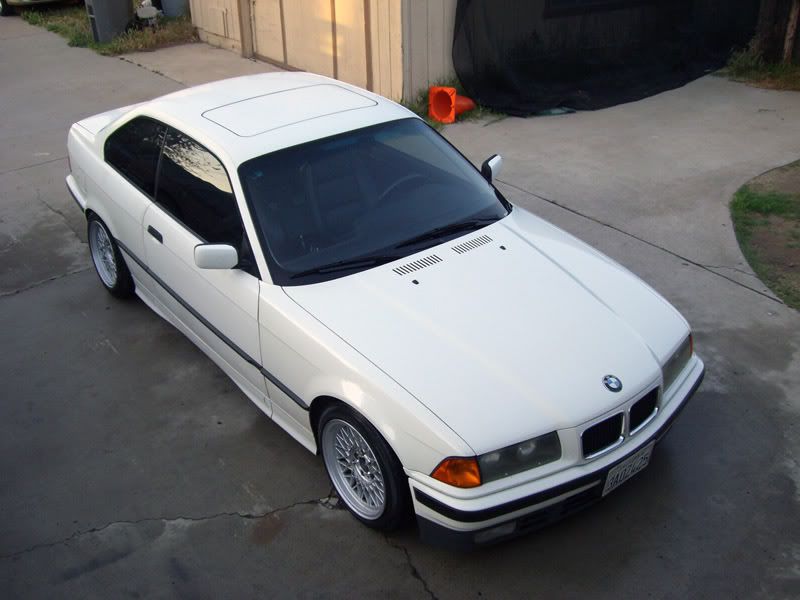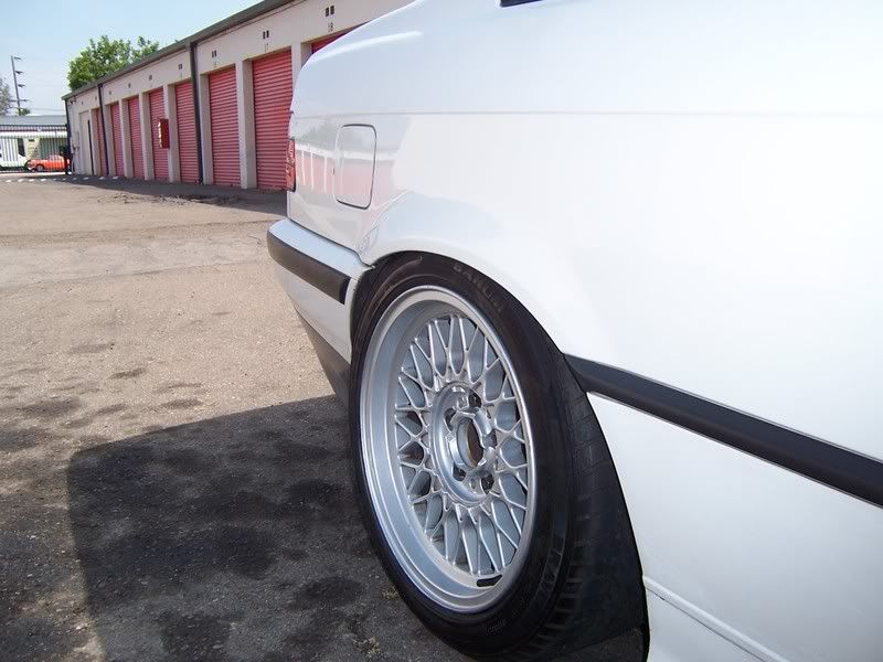 Depending on your suspension you can fit these on your E36. My car was very low and I managed to run 205/50/16 without any problems. 215-225 is possible with minor fender rolling. They have some curb rash but nothing crazy.
