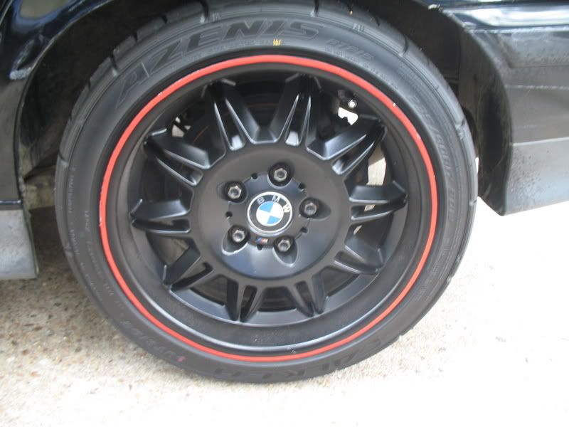 Tread is apprx 50% left and they are 235/45/17 (so they can be rotated and spacers are not required on e36)