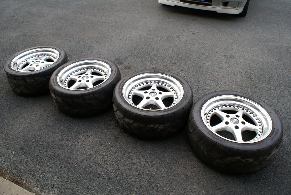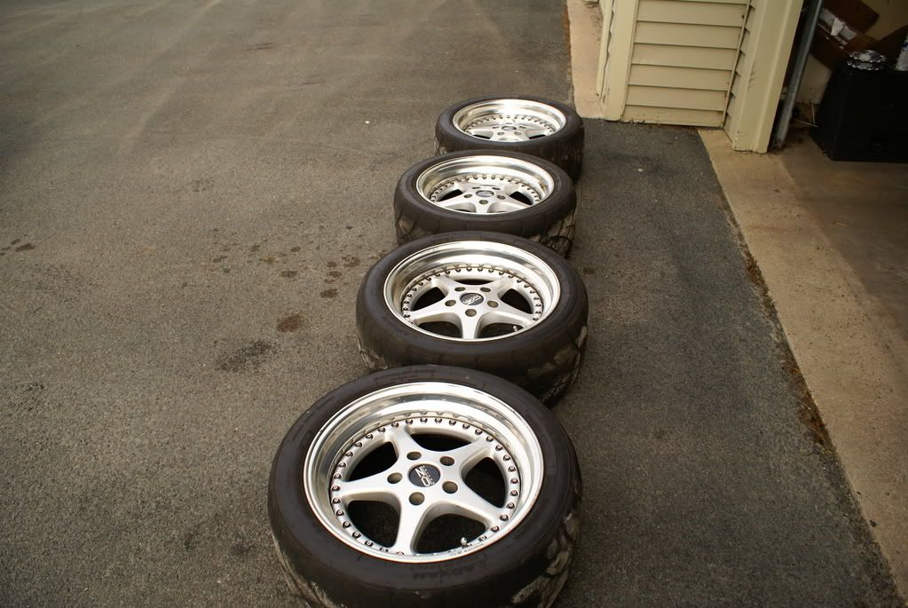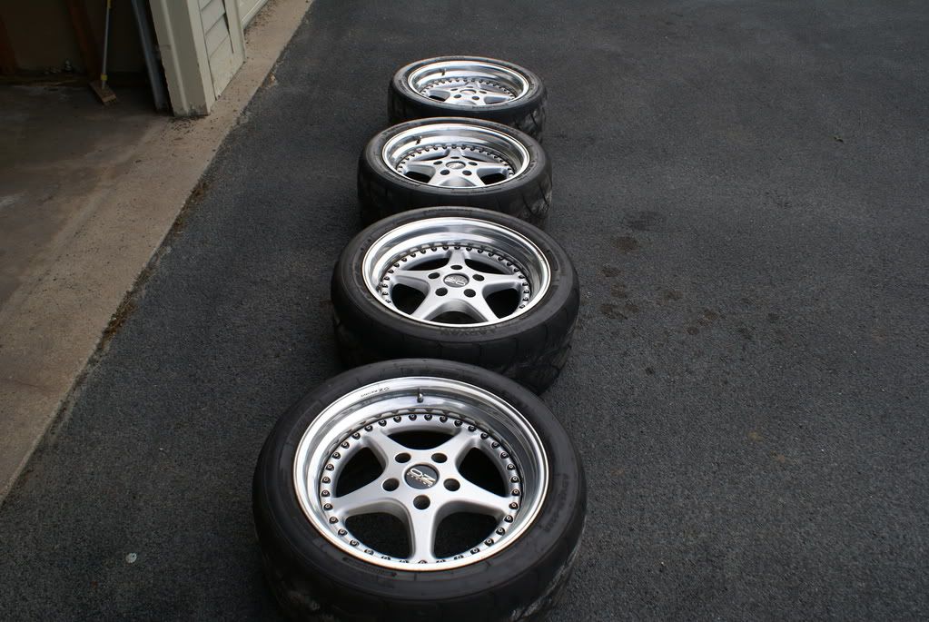 The tires on the wheels are Yokohama A032 R-Compound tires sized 255/40/17. The tires still have very decent thread left. The tires were about $250 each iirc.