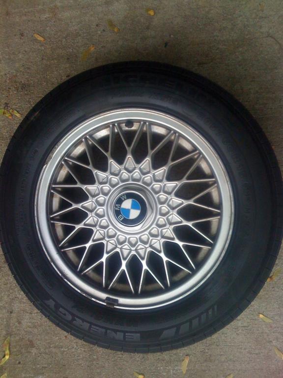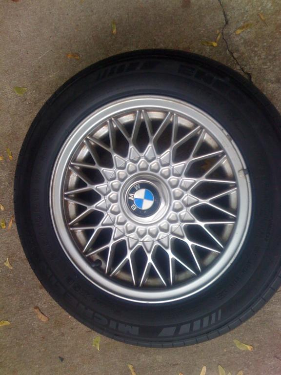I'm selling a set of 4 weaves off my '89 IX. I believe the offset on these are 42mm, but double check me. They are original off the car. Tires are 205/60/15 Michelin Energy MXV4's. Consider the tread mostly gone. I would say 3-5K left on them. All have center caps with roundel in good shape. I've pointed out the curb rash, otherwise the rims are in good shape. Looking for $300 plus shipping (figure 100-150 depending where in the US). OBO.