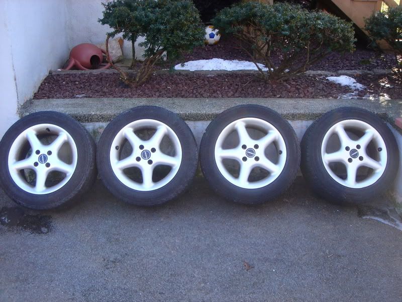 Selling a set of Borbet Type H. They're a basic 5 spoke, which look really nice. I haven't taken them off of the car yet, so I can't tell you the offset, I will know tomorrow when I take them off. I think the width is 7 inches but I will know tomororw also. They come with 205/55/15 Continental Extreme Contact tires, which have some decent tread left. The wheels are overall in excellent shape, some very minor rash on 2 of the wheels. They aren't bent and come with center caps. I will take some more detailed pics when I clean them up tomorrow.