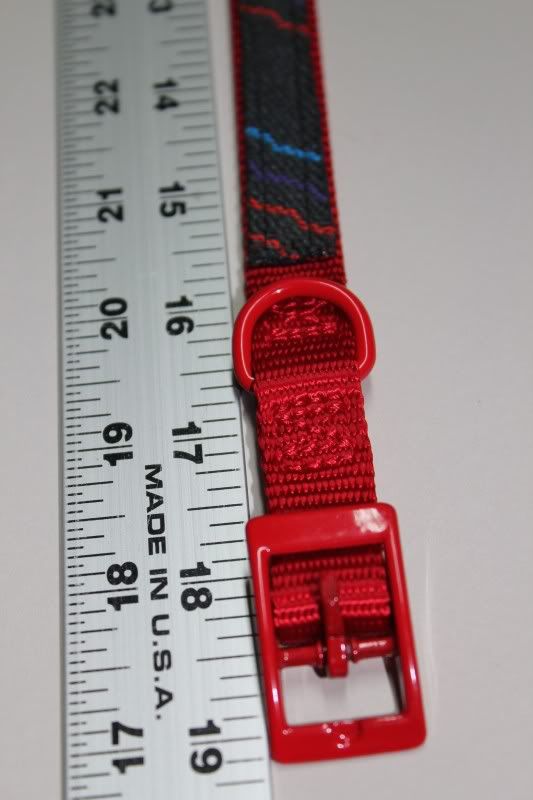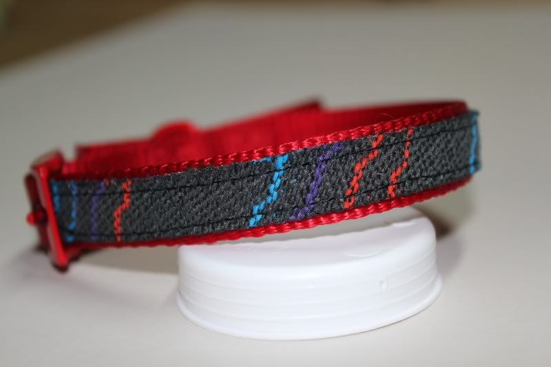 Small collars are now available for your small dogs! These will arrive adjustable from 11'' to 16''. You can use this on your Chihuahua or other small dog easily by adding your own hole (as you would do with a belt for pants) for any neck size under 11''. These are 5/8'' wide. The fabric is now angled for that "M" look. The buckle and D-ring are red painted steel. As with all of my collars, they're hand made to order, so let me know what you want!