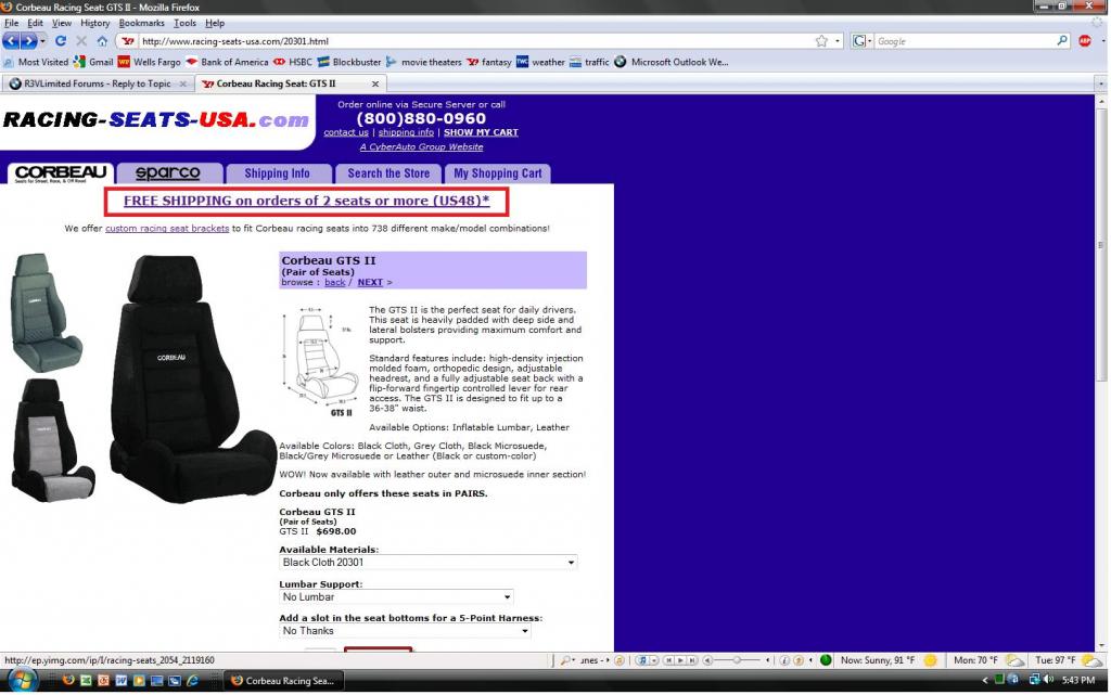 As you may realize, Corbeau does not condone discounting of their seats as a general rule. That said, we are able to provide a significant discount on the seats we sell by offering free shipping. Few people realize the cost of shipping a pair of seats these days.