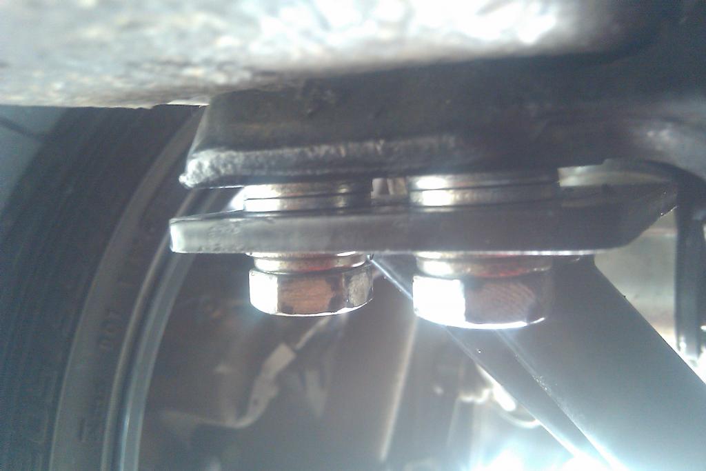 and still having rubbing issues. this time I have pics tho. I tried putting washers in the bolts where it goes through the steering rack. Lowered the car and it immediately rubbed. I also dont like it this way cause the bolts just barely reach the nut..im not sure if theres enough bolt going through the nut up top so im going to try washers at the lolipops, where the cross brace connects there.
