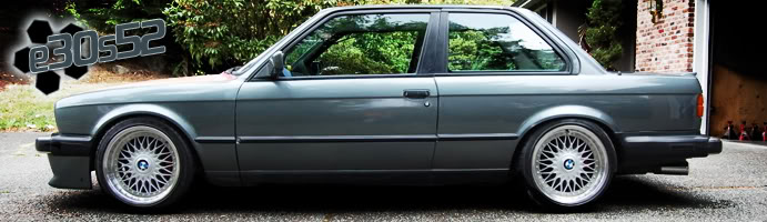 when i test fit the wheel originally onto the e30 i just held a 5 lug wheel in place since their center bore is large and the car doesn't have lugs. Why don't you see if there is a local e36 guy with a 17x8" wheel and 235/40's that would let you borrow a wheel for test fitting. you'd also just need a spacer or something spacer like while you held it there to compensate for the spacer. that should give you some sort of an idea.I'm still debating 235s and 215s.... I'm leanin closer to 215s just to get some rubber under the car and to be able to make a bmw school the first weekend in october... I don't wanna attempt 325s and run into an issue that will keep me from running the school... I also just bought another expensive ass toy so im debating holding off altogether till spring