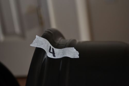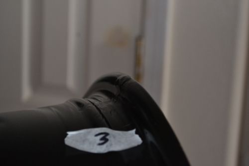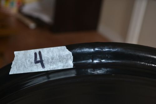 this is #3 barrel with the bend. #4 isn't as bad is this one, but still bent with no mention of it. I made an outline of the rim on the cardboard. I took the rim off and tried putting the rim back on the out line and it wouldn't line up with out moving it around. If the barrel was not bent it would've been effortless to match up again, well because it should be a perfect circle.
