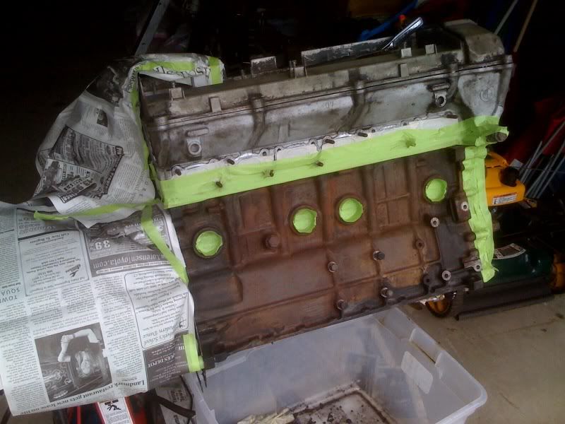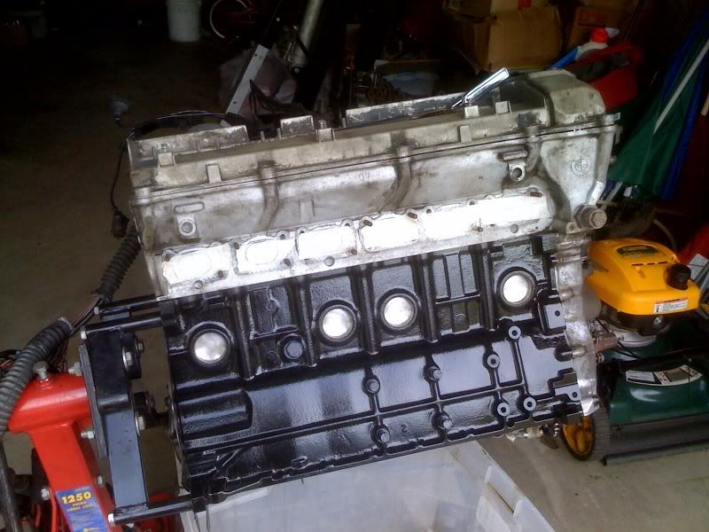 Cleaned up the block and painted it, removed the 3er oil pan and pickup and baffle and broke off the pick up tube bracket (very easy) so as to avoid removing a main bearing cap.