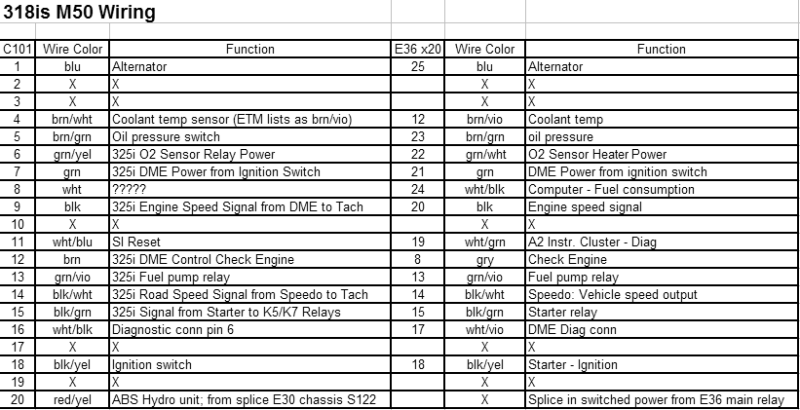 Since you have no connector you must go through the ETMs found here http://www.wedophones.com/BMWManualsLead.htm and check every page for the c101 and x20 connectors. Its time consuming and teidious but my car started on the first try and has had very few issues I couldn't figure out. Plus you become very familiar with your cars wiring, which makes troubleshooting a million times easier. You can't just rely on what people on the forums say. Sometimes they have no clue what they are talking about. (like putting the center support bearing on backwards).Past Car : E30 S50 6 Speed 5 Lug 3.73
