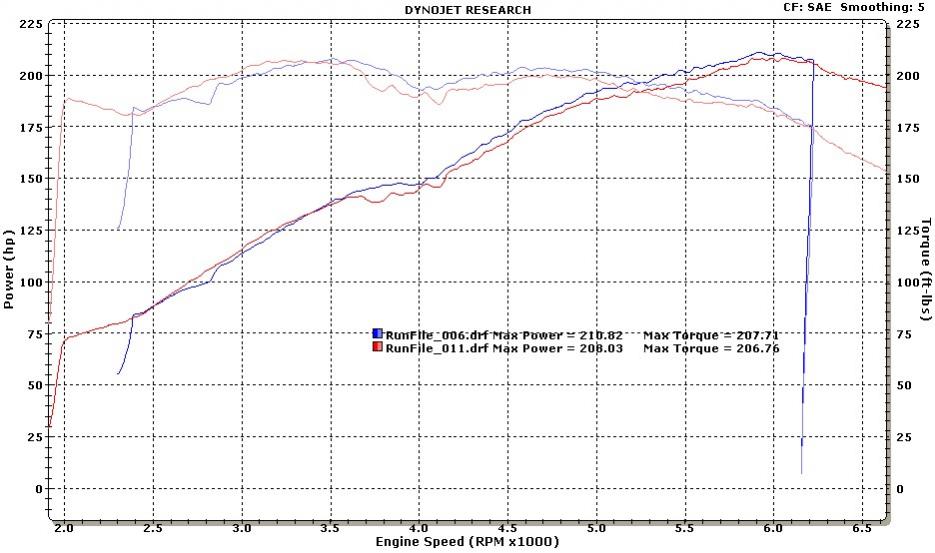 This is euro headers vs OBD2 exhaust manifold, same exact tune. I actually lose a few horsepower. Could easily be difference in tire pressure, how the car was strapped-down, etc.