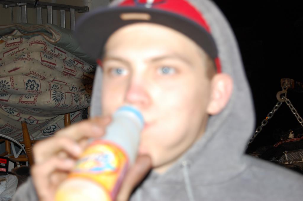 So today my buddy Stevo and I got an early start to the day. We went to the junk yard and that was completely unsuccessful in finding the brake booster and master cylinder. I had a booster, it was just the wrong one. Awesome for me. We then went and got my intake manifold. Then we went to pep boys or something and got all of my fluids and got some taco's and the taco bus. Best place ever. By far one of the most authentic Mexican food...in Washington. I'm sure there are more authentic places somewhere south? Anyway...We got back to my house and went straight to work on getting the tranny onto the engine. We then spent the next 2 ish or more hours figuring out how to put the engine and tranny into the car. And then...success!!!! I now have a m50 in my e30. I am more then stoked. But...and there is always a but...I hate the mess underneath the intake manifold. I am thoroughly confused on how it all goes back together because I didn't take it apart. If I take it apart, I can put it back together. So I will post more pictures of the mess and all the help from you guys would be GREATLY appreciated. So...on to the pics of the day. Funny pic of me drinkin sunny d. Love that stuff.