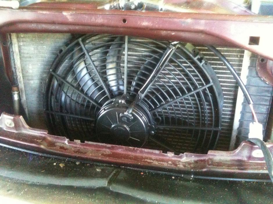 The fan is a 14 inch SPAL pusher fan mounted in front of the radiator.