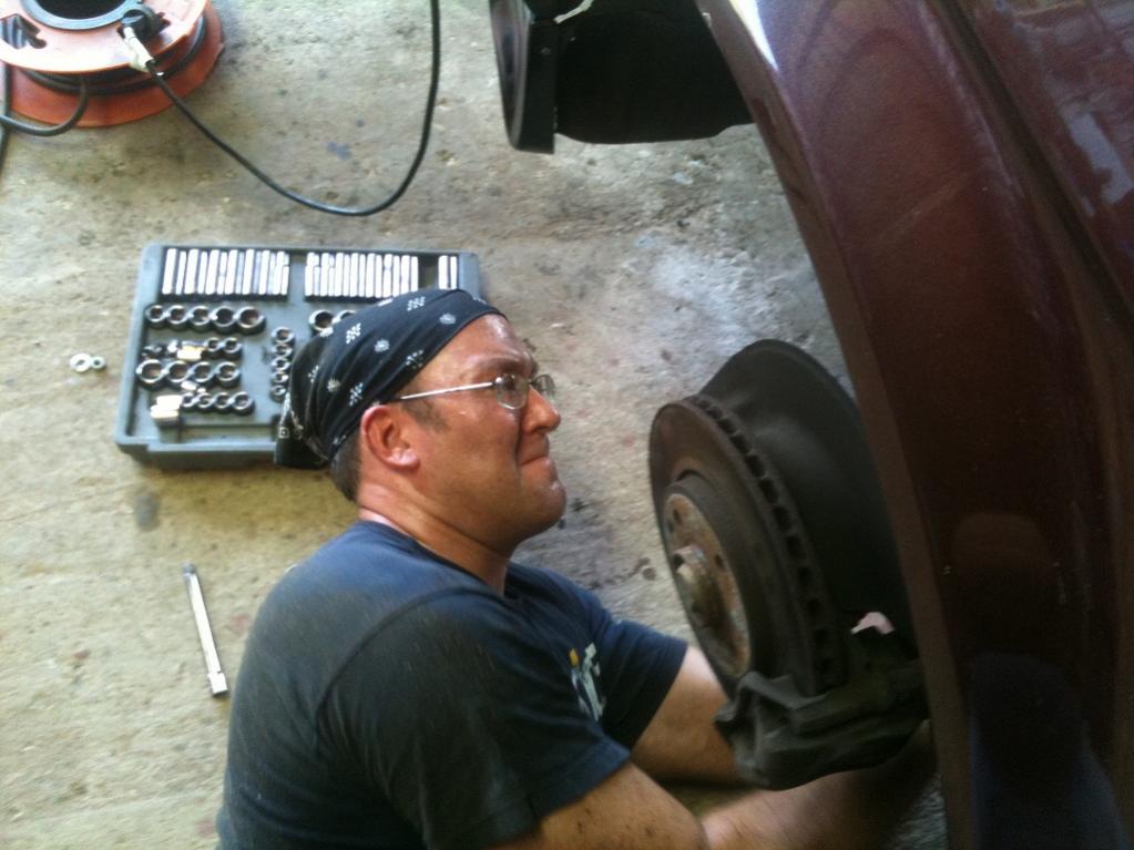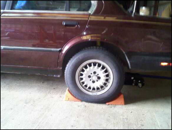 I figured since I replaced the control arms it was best to do like the Bentley manual says and put the car back down on wheels for everything to seat properly