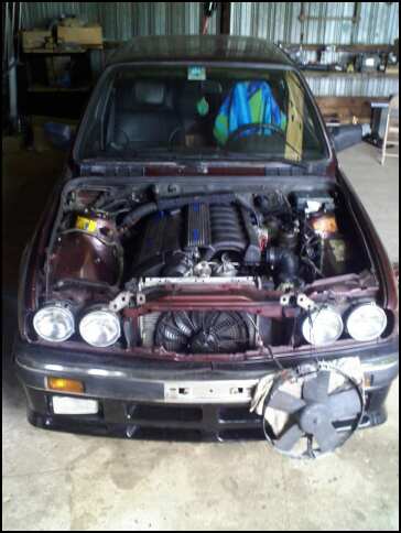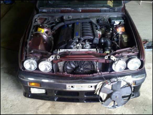 We installed the M50 and then looked at the stock E30 fanclutch and said 'that shits not fitting in there!'