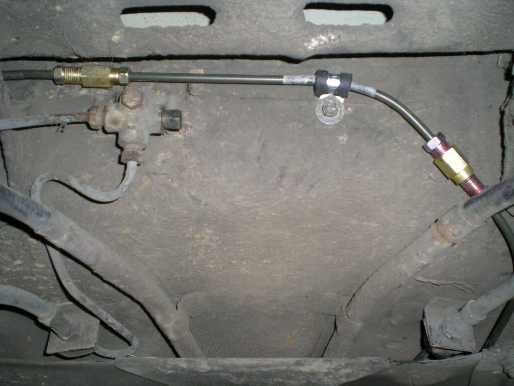 The e30 uses a brake proportioning valve and a single line that Y's in the rear to the two wheels. I caped one port on the Y and routed another new line from the right rear wheel all the way to the front.Comment
