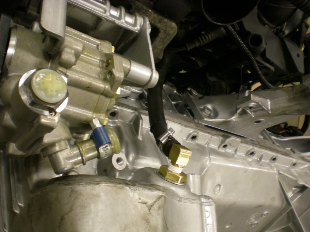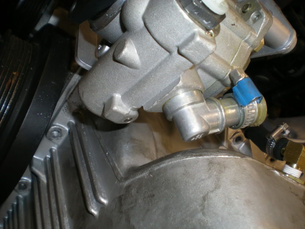 In order to get power steering with the stock e46 pump, I doesn't actually fit. at least not with the pump my e46 was running. There are two different pumps, the other might have fit without modification. I had to cut and drill new holes into the bracketing power steering mount brackets. Before I did this the pump was hitting the pan. Now I have about 1cm of clearance.