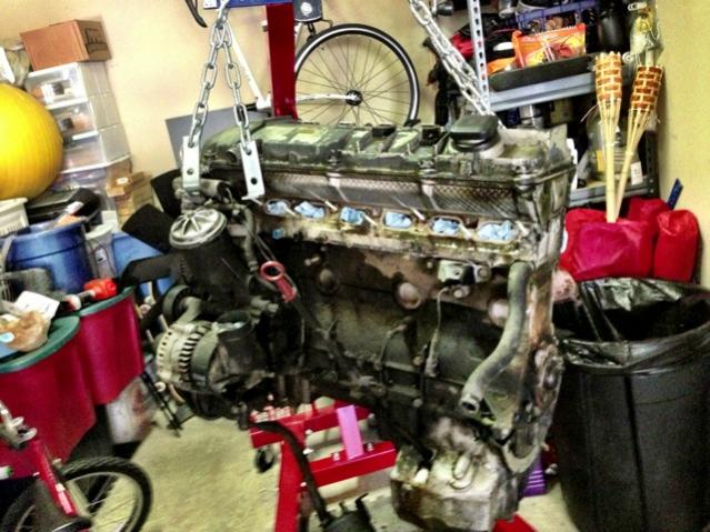 The engine is out of a 1993 BMW 325is (M50TUB25). I went with the M50 because it was inexpensive, and, being a noob, I don't want to spend a ton of money, only to mess everything up.