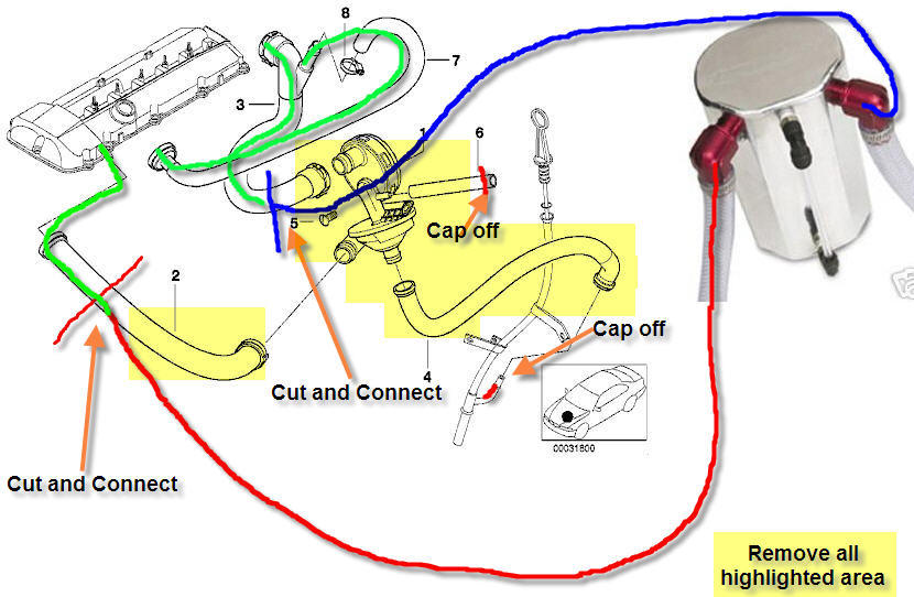 An alternative would be to run a simple catch can, but I imagine that it would go on the smaller vacuum line and most cans I see are set up for the 3/4" tube. The OBD1 system also has 2 tubes splitting right from the valve cover, and the catch can would also ideally need to go between it and the intake elbow (non-vacuum). So I'm unsure how to go about merging these tubes to incorporate a can.