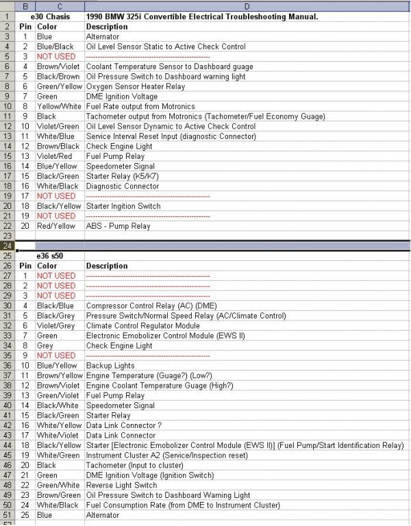 On the E30 and E36 sides there is a green wire - this is for the DME Power from ignition switch, and that I've got hooked up.