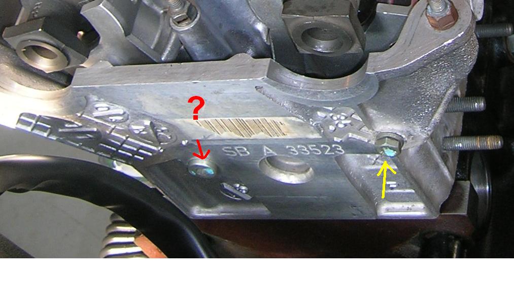 I always thought the red arrow was a coolant way, the yellow is just a bolt, usually holds the bracket that secures O2 sensor cables