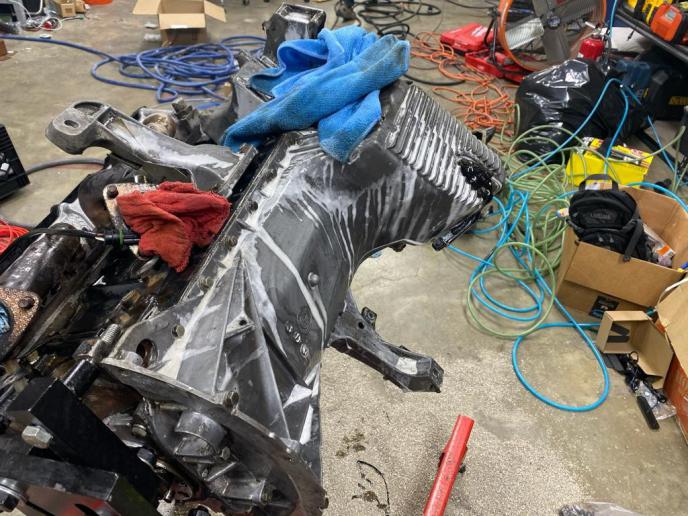 Note, I removed the windage tray and did not reinstall. I also just bent the old sump mounting point back and forth until it came off.
