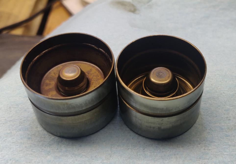On the right is some sort of other lifter, only marked BMW883.2. Seems to have less oil volume inside (potentially lighter), and a more elaborate oil entry port?