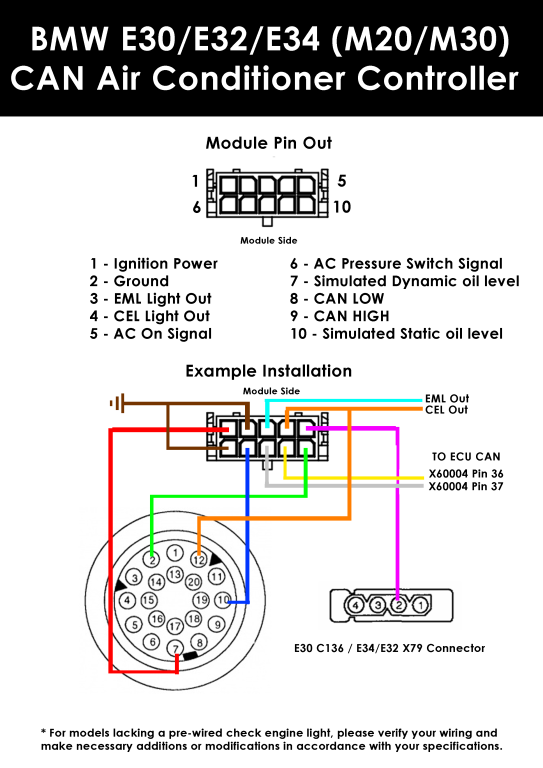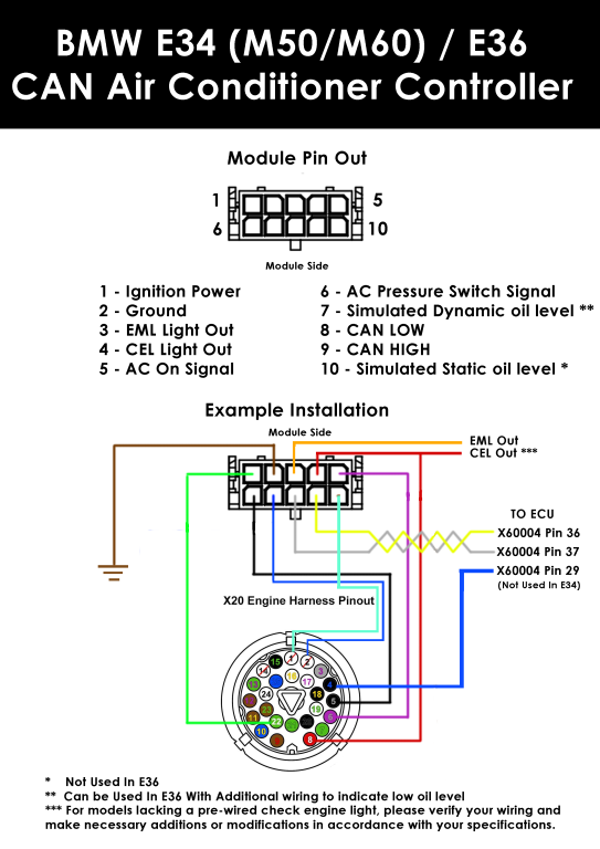 M54/S54/S62 to E30/E36/E34 AC Controller