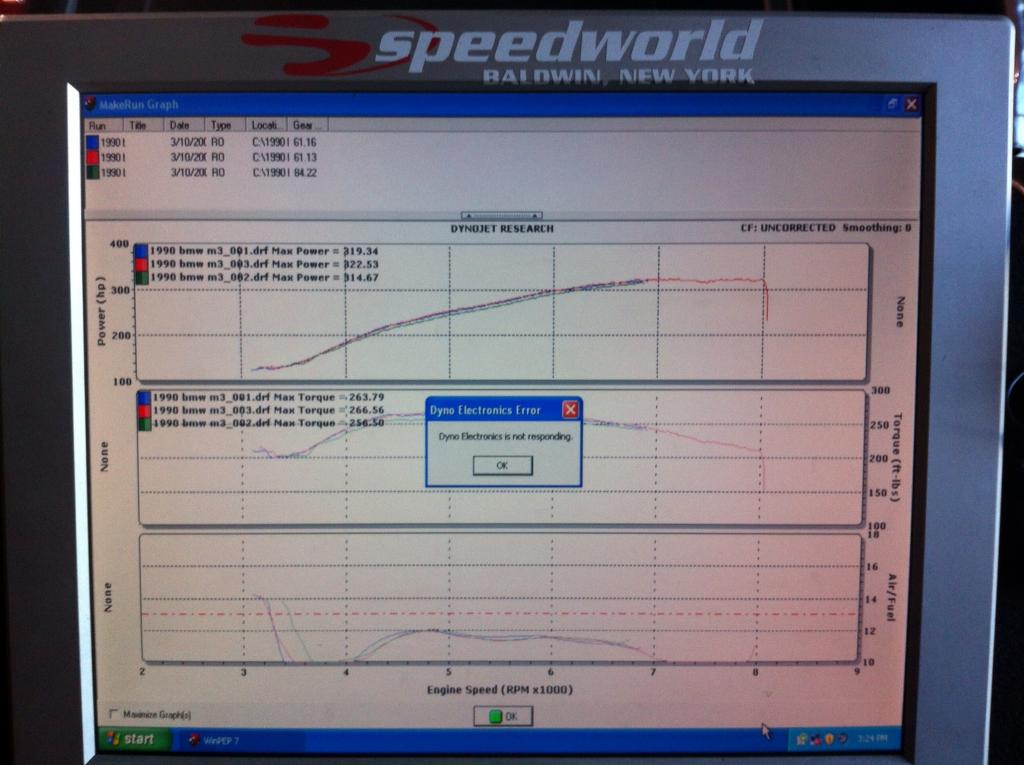 i saw that it went crazy rich after 6500, the tune is a mild street tune, the intake setup is basically stock except for the bimmerworld elbow, i have a csl oem intake that i'm going to try next before i do any changes to the tune, we did 2 pull to 7k, then a 3rd to 8k in 4th gear the power was still strong at 8200, i love the torque very linear from 4k, gonna do some 9k pulls with the csl intake i wanna c where this thing stops, then after that do a race tune, before i put the 3.4 insigpicComment