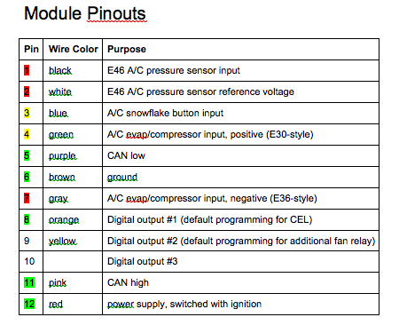 To clarify - it isn't just a single pin. The M50/52 & S50/52 DMEs need the snowflake input and evap/pressure switch input to enable compressor output. MSS54 is essentially the same two binary signals + a pressure value (load) transmitted over the CAN bus.yeah the older computers just take a single pin at the DME that tells it if the compressor is on or not. All you need to do is wire it up.