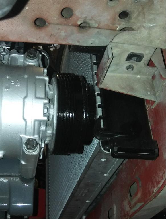I used a large pry bar and shimmed it in place for now. Used a 3/4" piece of wood between the oil pan and sub frame. The compressor clutch now has about 1/4".