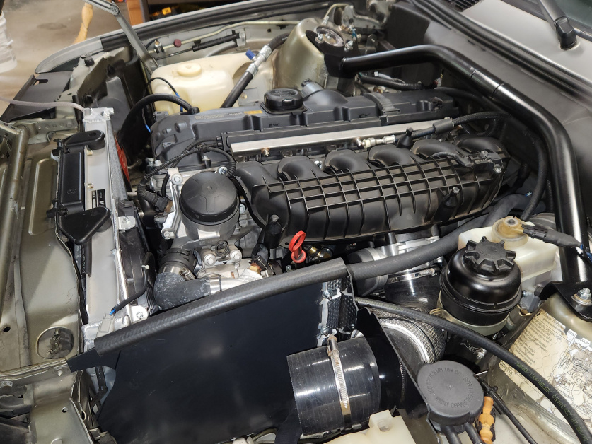 That said, there is room for the motor to go further back, probably another 1", but I wouldn't do it without re-working the shift carrier, probably going rear sump for lack of space in the front and sticking with the N54 intake.