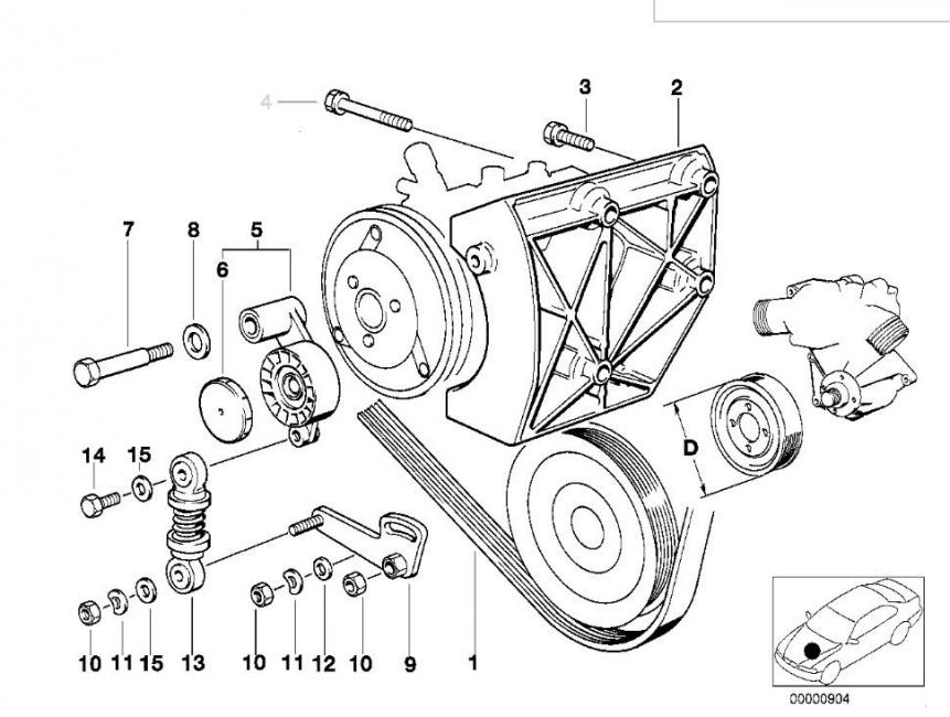 The top is the N52 compressor I pulled off (you can see my AC Comp label on the plug I snipped from the harness to start poking at it). The bottom is the compressor from a BMW M73. I didn't know that engine code off the top of my head, so don't be shy if you didn't. It's the V12 from the 7 and 8 series from 1994-2001. In other peoples underhood photos from those cars, it looked suspiciously similar, but as far as I can tell is a conventional clutch operated compressor (confirmed via the 8 series ETM, the fact that the wires go to the front instead of the back, and sheesh it's from 1993). I started this search by looking at serpentine belts. Most BMW compressors are driven off a secondary belt (which is why they're so easy to delete) which has a narrower width and fewer grooves on the pulley. For whatever reason the M73 is driven off the main belt like ours, and had the same number of grooves. They were both Denso OEM, and I figured if they looked this similar there was a decent chance that the bolt faces and pulley location were the same. All of the compressors from this era look like they use a bracket to adapt to the block: