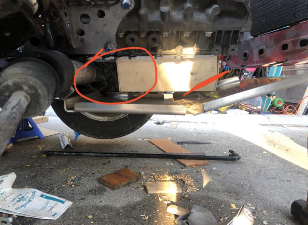 Losing most of that wing kills a lot of oil volume, but there's space for another inch of pan at the back: