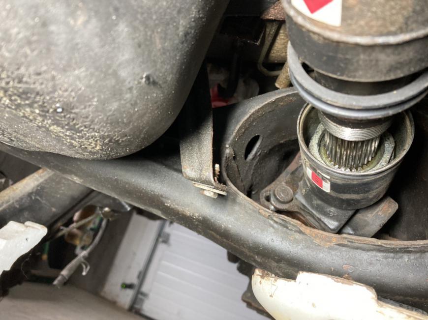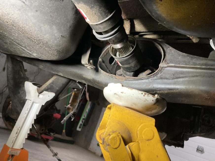 Last step getting out my subframe to replace bushings and the driveshaft is hung up.