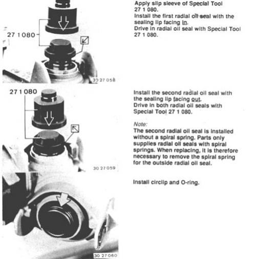 depth is important so just measure each before removing and insert new to the same depth (i used a deep socket ), tape the front area of shaft to avoid cutting new seals , and put outer seal in backwards with no spring in it (its just a dust shield )