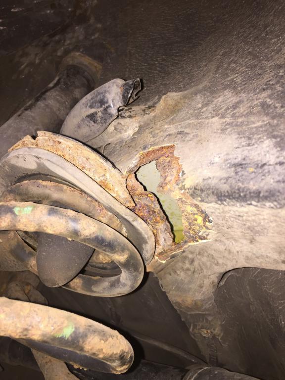 Still going through the "rust free" 91 ix I bought off this forum from NEO. Seemed like the rust was mostly fender wheels and not structural until I found these holes today on the rear passenger spring perch area.