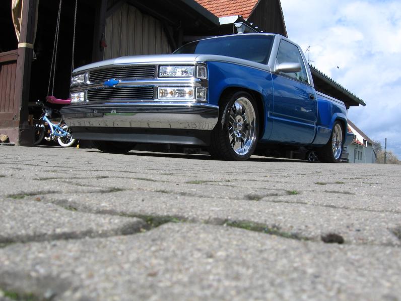 I'd personally want bags and a bodydrop, but coming from a minitrucker, and an avid chevy fan, I say your truck is damn nice, and clean. The skulls are super pimp, and I applaud the switch from teal to blue, it looks great.