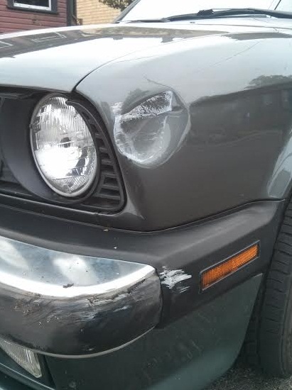 I have a 1987 325is, Delphin-Metallic. My brother in law was driving our friends VW van (he is used to a Subaru Impreza) and tried to pull into our driveway, ended up swiping my front fender and now there is a fairly large dent. I don't think it is repairable, the dent goes right across the line that runs the length of the car, so I was planning on getting a new fender. I have sourced a few at a local parts yard, but none of them are the same colour.
