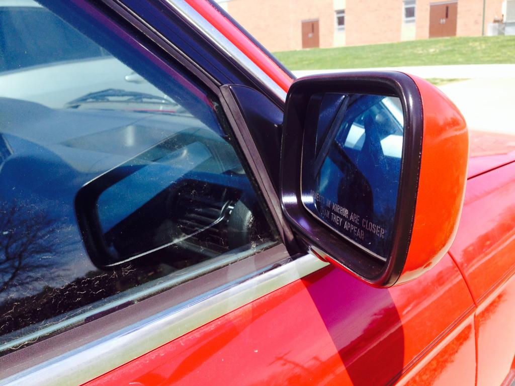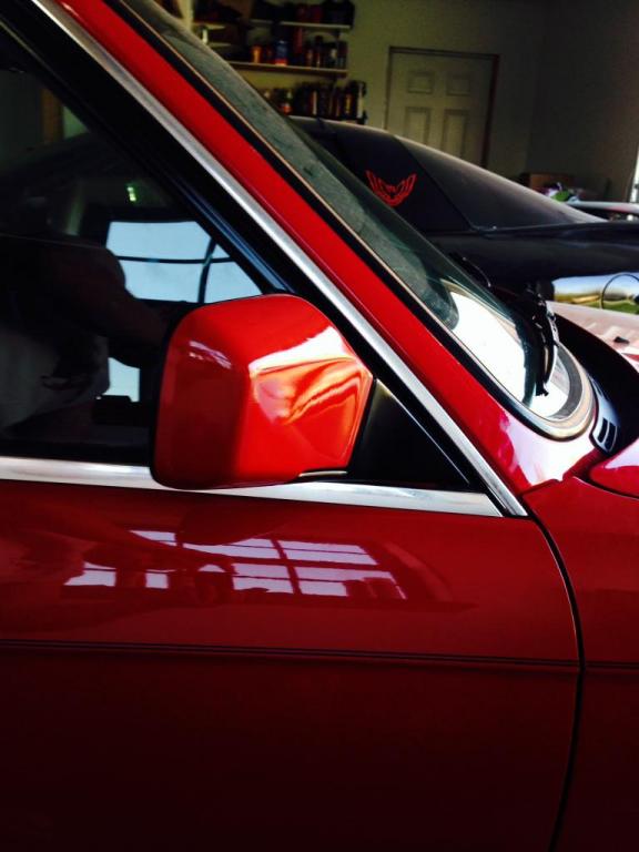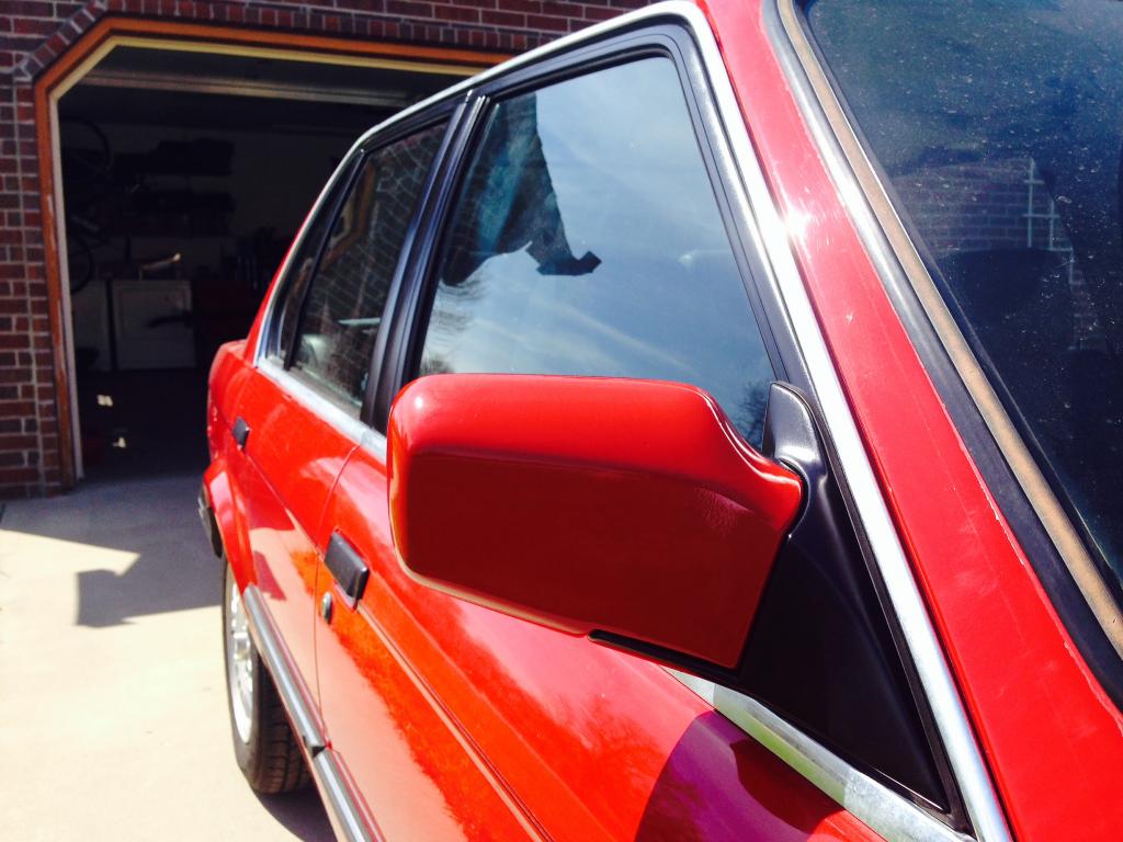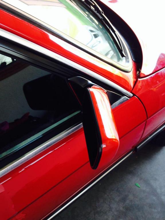 Hey guys I just wanted to share an idea I've been playing around with. I wanted to paint my sideview mirrors to match my body color but wasn't completely sold on the whole thing being one solid color. So I took a cue from more modern cars and painted the mounting side of the mirror, as well as the small trim around the actual mirror black to match the trim and the forward facing portion body color. I think it turned out pretty good, but I figured I'd see what other opinions I could get on it.